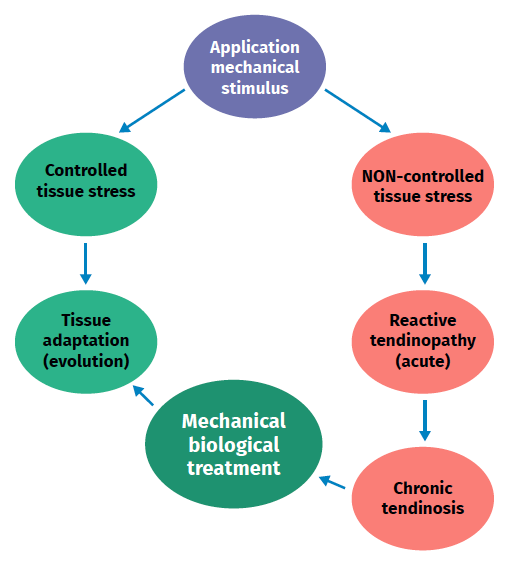 Figure 2. Schematic representation of the stimulation, stress, adaptation or lesion process in tendon physiology.