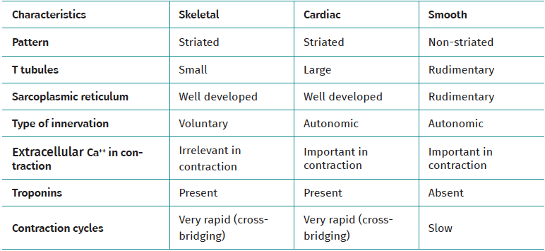 Table 1. Differences between types of muscle tissue and their main characteristics