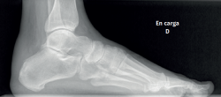Plain radiography under loading conditions is the essential initial diagnostic tool(20). It allows us to assess alignments and dysmetria, to measure angles, to determine the morphology of the calcaneus and its posterior tuberosity, to characterise bone exostosis and increments in thickness of the retrocalcaneal soft tissues, and to plan surgical procedures (Figure 3).