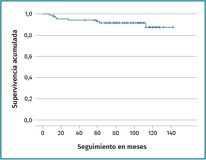 The mean duration of follow-up was 86.8 months (SD: 30; range: 60-142 months).