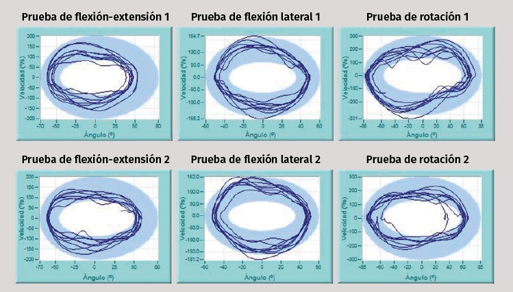 Conclusion: the biomechanical technique has turned out to be a useful tool, as a complementary test, for the functional assessment and for the evolutionary control of the whiplash patient, contributing to their labor reincorporation.