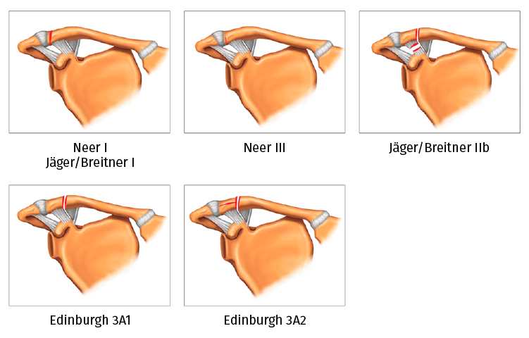Las fracturas de clavícula son una entidad bastante frecuente debido a la localización subcutánea del hueso. Las fracturas de clavícula distal representan únicamente el 15-28% de las fracturas, aunque suponen entre el 30 y el 45% de los casos de pseudoartrosis; por ello, debemos plantearnos el tratamiento quirúrgico de entrada. Gran variedad de especialistas han propuesto sus propios sistemas de clasificación, cada uno con sus propias ventajas e inconvenientes. El tratamiento y los resultados de la fractura de extremo distal de la clavícula dependen del desplazamiento y de la lesión de los ligamentos coracoclaviculares (CC), que hacen que la fractura sea inestable. Hay numerosas modalidades de tratamiento disponibles para su manejo. Hasta la fecha no se ha descrito ninguna técnica gold standard.