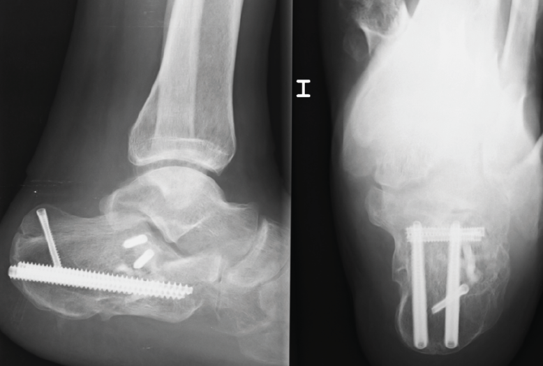 Results: sixteen patients with 18 fractures (15 men and 1 woman) were evaluated. Sanders classification was: 10 patients IIA, 2 patient IIB, 1 patient IIC, 4 patients IIIAB, 1 patient IIIAC. Mean time injury to operation 15,7 ± 6,5 days, 3 ± 1 days hospital stay after surgery, 7,7 ± 1,1 weeks until partial weight-bearing. Böhler angle pre-surgery was 15,1 ± 8,8°, after surgery was 25,2 ± 7,8° and 3 months after surgery was 26 ± 8,9°. No patients had wound complications, 3 patients had sural nerve damage but only one patient required surgery revision. Three patients need articular anesthesia infiltration and only one required arthrodesis
