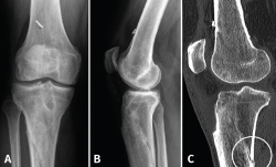 Three cases of fractures around the knee are presented, which can be included in so-called stress fractures due to bone failure. All 3 patients presented the fracture within a few months of having undergone surgery. Two of the patients underwent reconstruction of the anterior cruciate ligament using the B-T-B technique and the third had undergone patellar alignment surgery. Two of the patients had suffered a trauma event, but not in the third one. This type of complications is discussed.
