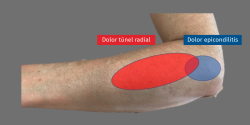 La mal llamada epicondilitis lateral de codo es una de las principales causas de dolor en el miembro superior. Se trata de una enfermedad con una patogénesis todavía incierta y con una histología de hiperplasia angiofibrosa. La relación de la epicondilitis con los trabajos manuales es ampliamente aceptada, especialmente si estos combinan los trabajos con movimientos repetitivos y trabajos de fuerza. Una correcta historia clínica, así como una exploración y un conocimiento de las diferentes pruebas de imagen, resultan imprescindibles para un buen diagnóstico. Especial atención debe ponerse en los diagnósticos diferenciales. Con la evidencia científica actual no es posible recomendar un tratamiento por encima de otro, ni siquiera podemos recomendar un tratamiento respecto a la abstención terapéutica.