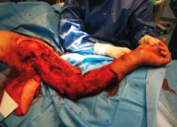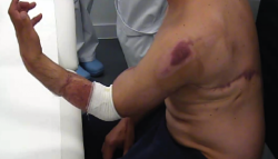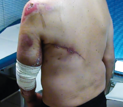 Ante un traumatismo grave del miembro superior izquierdo, con degloving axiloantebraquial y compromiso vasculonervioso, es de suma importancia el trabajo coordinado tanto de servicios quirúrgicos como rehabilitadores, para el diagnóstico precoz y el tratamiento adecuado de las lesiones, que, en este caso, se consiguen recuperar gracias a la conjunción de la inmediatez del diagnóstico y el traslado a una zona especializada, la minuciosidad y la detección de complicaciones quirúrgicas de aparición precoz, así como el trabajo combinado de la rehabilitación progresiva, que dieron por resultado no solo salvar la extremidad superior con riesgo real de amputación, sino conseguir su funcionalidad casi completa con reincorporación no solo a la vida diaria sino al trabajo habitual de carpintería, con todos los requerimientos físicos que dicha labor supone.