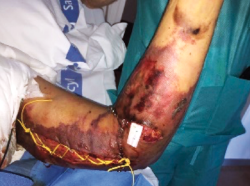 In the event of severe trauma to the left upper limb, with axiloantebrachial degloving and vasculonervous involvement, the coordinated work of both surgical and rehabilitation services is of utmost importance, for early diagnosis and appropriate treatment of lesions, in this case, it is possible to recover thanks to the conjunction of the immediate diagnosis and transfer to a specialized area, the thoroughness and detection of early-onset surgical complications as well as th combined work of progressive rehabilitation that resulted, not only in saving the upper limb with real risk of amputation, but also in achieving its almost complete functionality with reincorporation not only to daily life but also to regular work of carpentry, with all physical requirements that such work entails.